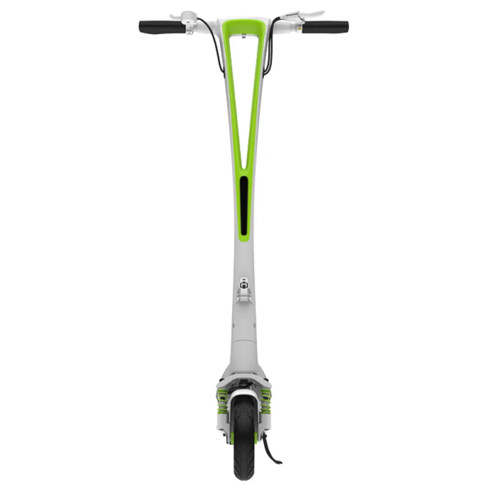 Модель компактная, легкая в управлении, легко складывается для транспортировки в багажнике или транспорте. На раме предусмотрен фиксатор, чтобы самокат случайно не раскрывался и не закрывался.