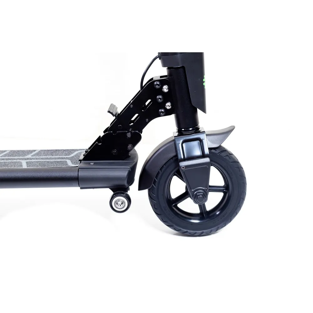 Электросамокат Jetson L9 предназначен для городских асфальтированных дорог, его колеса имеют размер 8 дюймов с эластичными бескамерными шинами. Они не боятся проколов, вам не придётся менять покрышки. Транспорт имеет складную конструкцию, габариты самоката уменьшатся в два раза в сложенном состоянии. Легким нажатием на рычаг рулевая стойка отпускается вниз. Для удобной транспортировки в комплекте предусмотрены дополнительные, транспортировочные колеса. Их можно устанавливать по желанию.