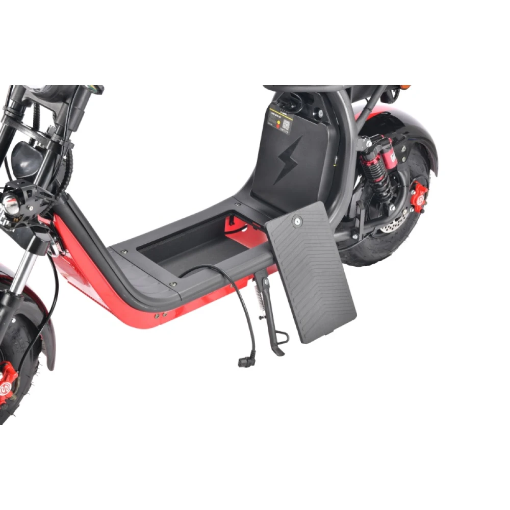 Электроскутер City Coco WS-PRO 2WD 4000W 21ah - полноприводный, модель для комфортных поездок по городу и пересечённой местности. Два мотора мощностью 2000 W каждый, обеспечивают быстрый разгон и уверенное преодоление подъемов. Удобные ручки руля препятствуют скольжению рук во время движения. Зеркала заднего вида повышают безопасность движения в плотном транспортном потоке. По центру руля расположен электронный дисплей, на котором отображаются основные параметры движения, в том числе набранная скорость и уровень заряда батареи. Производители предусмотрели возможность установки второй аккумуляторной батареи, что позволит вдвое увеличить запас хода. Широкие колёса диаметром 8 дюймов обеспечивают надежное сцепление с поверхностью дороги и преодоление различных препятствий на пути. Качественные амортизаторы поглощают неровности дороги и снижают вибрацию, благодаря чему на электроскутере комфортно передвигаться не только по асфальтированным, но и по грунтовым дорогам. Особенностью данной модели является наличие полноценного пассажирского сиденья. Грузоподъемность 260 кг позволяет комфортно разместиться на электроскутере двум взрослым людям. Закрытый багажный отсек обеспечит сохранность перевозимых вещей даже при неблагоприятных погодных условиях.