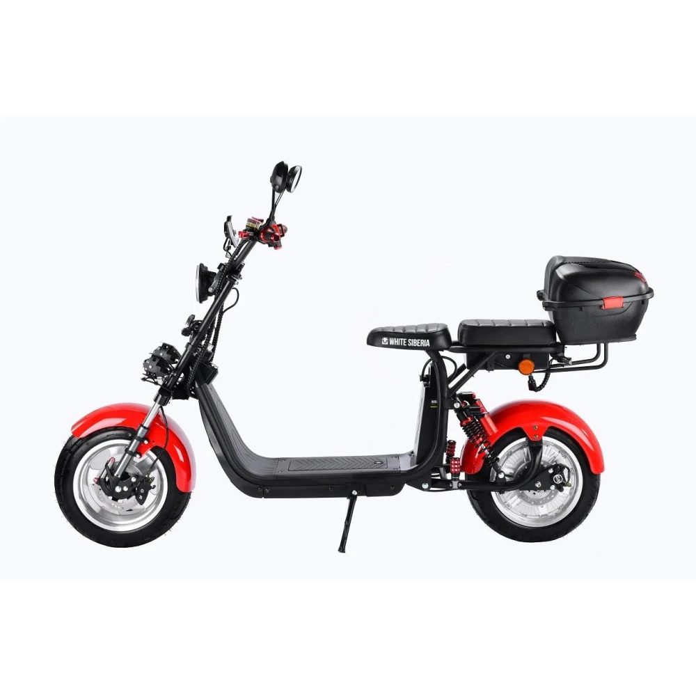 Электроскутер CityCoco WS Pro Max+ 3000W - обновленная версия полюбившейся модели индивидуального городского транспорта. Новинка получила ряд улучшений, благодаря которым каждая поездка станет еще более комфортной и приятной. Производители усовершенствовали переднюю и заднюю подвеску, повысив плавность хода при движении по различным типам дорожного покрытия. Задние амортизаторы теперь можно регулировать, подкачивая воздух. Мощный мотор обеспечивает впечатляющую скорость движения до 71 км/час, что сопоставимо со скоростью легкового автомобиля. При этом разгон происходит уверенно и плавно, без рывков. Электроскутер оснащен дополнительным сиденьем, что дает возможность водителю передвигаться вместе с одним пассажиром. Удобная платформа для ног водителя и эргономичные ручки руля обеспечивают максимальный комфорт во время поездки. Основные параметры движения отображаются на крупном электронном дисплее, который расположен по центру руля. Водитель легко может оценить набранную скорость или уровень заряда батареи. При полном заряде аккумулятор гарантирует запас хода до 65 километров. В темное время суток безопасность движения обеспечивает система освещения, в которую входит яркая передняя фара, задние габаритные огни поворотники.