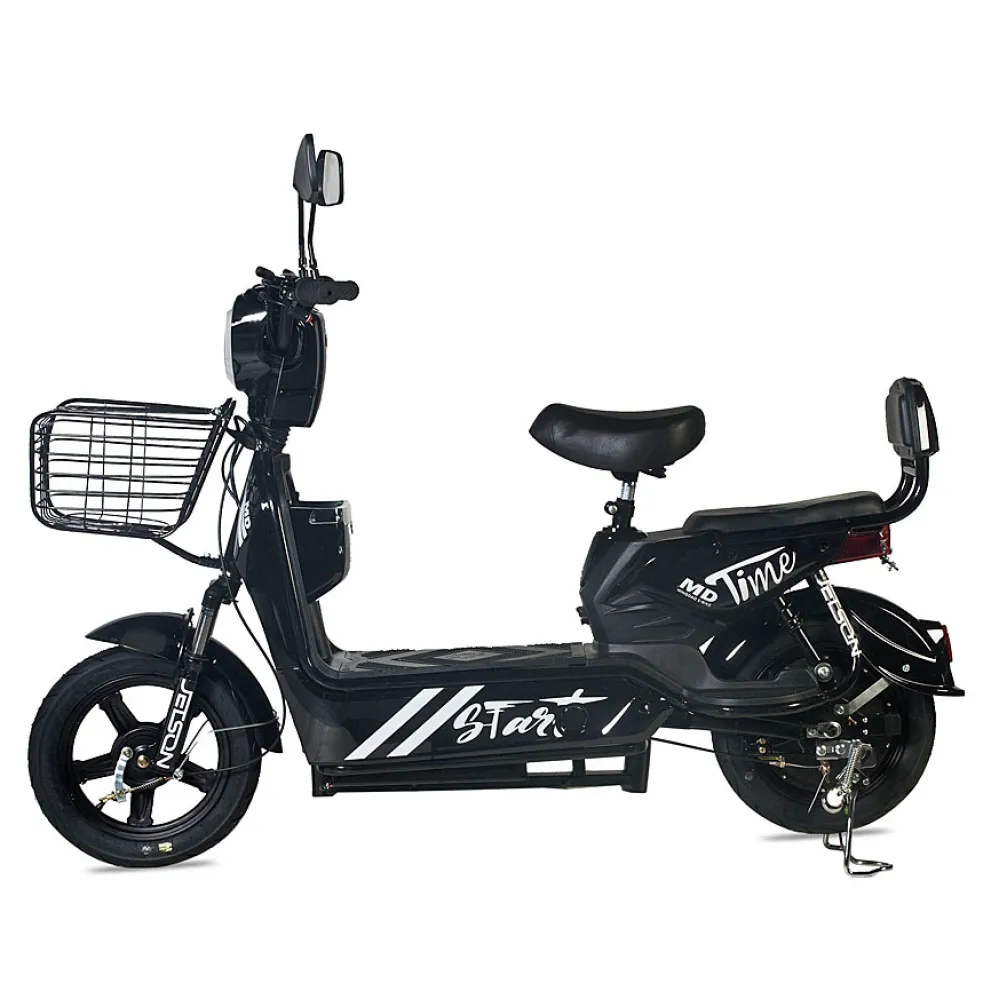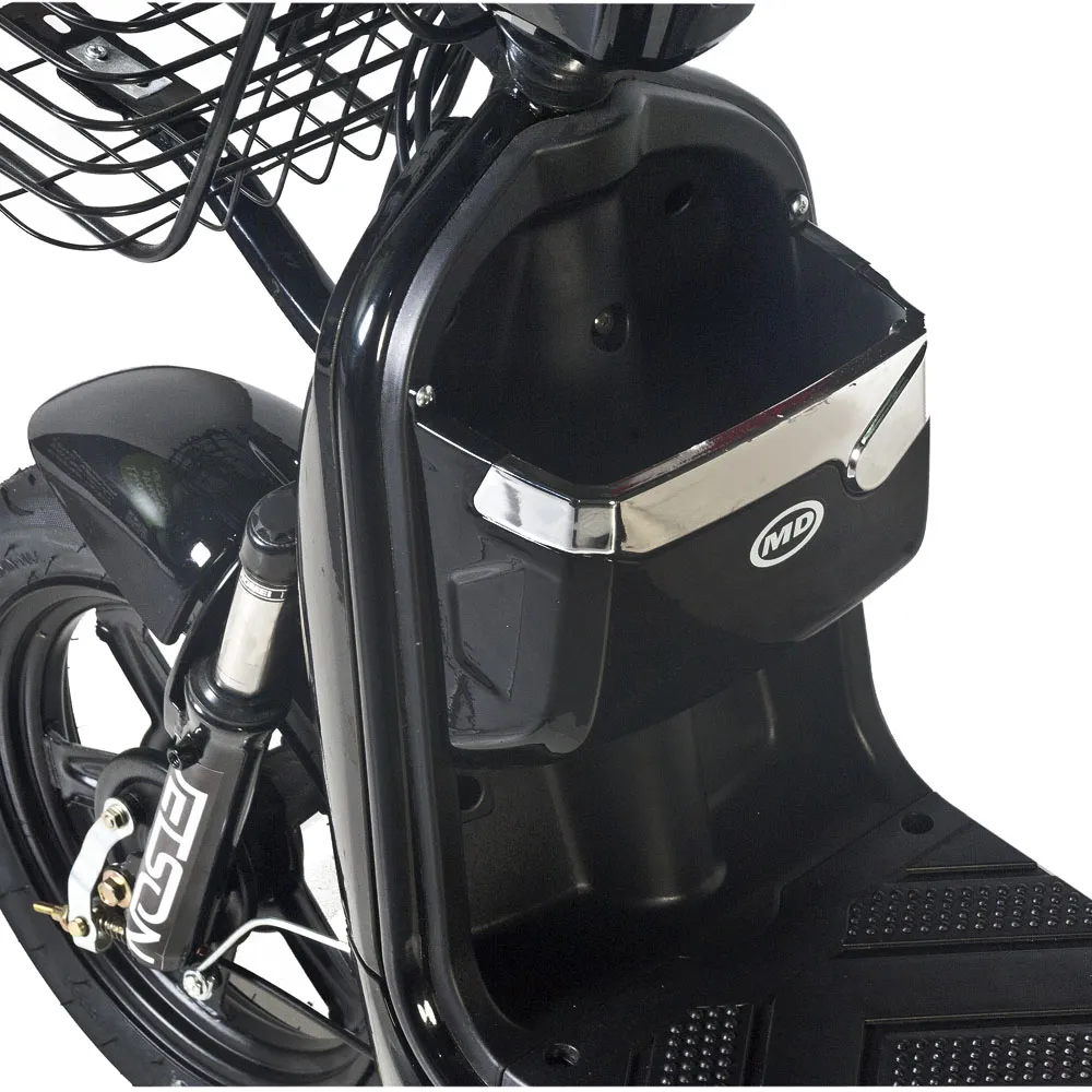 Электроскутер Jetson RS-12 – двухместный городской электроскутер, ориентированный на максимальный комфорт пользователя. Это понятно уже с комплекта – с завода к скутеру идёт корзинка для перевозки личных вещей и удобное сидение с прямой спинкой для пассажира. Интерфейс скутера интуитивно понятен, ручки тормоза выполнены в анатомической форме, а грипса ручки газа сделана из нескользящего материала, что повышает безопасность поездки. 14-дюймовые колёса электроскутера Jetson RS-12 имеют высоко профильные покрышки, которые без труда проезжают по самым худшим неровностям. Кроме того колёса накрыты полноразмерными крыльями, защищающими водителя и пассажира от грязи и брызг во время движения. Мощная LED-лампа и задний ходовой фонарь делают скутер заметным даже в самое тёмное время суток. Электромотор скутера наделён 350 Ваттами мощности, что позволяет разогнать скутер до 40 км/ч. А быстросъёмный свинцовый аккумулятор ёмкостью 12 Ач делает возможным преодоление 50 километров без подзарядки скутера. Приятным бонусом ко всему является сигнализация, идущая к Jetson RS-12 в комплекте, как и зарядное устройство.
