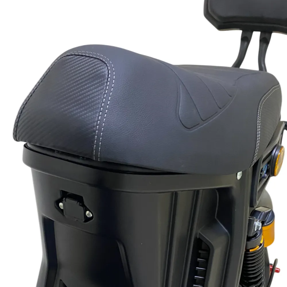Электроскутер Citycoco GT E30 в черном матовом цвете — это универсальное средство передвижения. С мощностью 3000W и задним приводом, он обеспечивает отличную динамику и маневренность на городских улицах. Благодаря двухколесной конструкции и надувным колесам диаметром 18 дюймов, скутер уверенно держится на дороге, что делает его идеальным для поездок по различным покрытиям.Съемный аккумулятор с напряжением 60V позволяет преодолевать расстояние до 50 км на одном заряде, что делает его идеальным вариантом для ежедневных поездок. Время зарядки составляет всего 5 часов, что обеспечивает быструю готовность к новым приключениям. Кроме того, в конструкции предусмотрено дополнительное место под аккумулятор, что увеличивает возможности автономной работы.Скутер весит 75 кг и может выдерживать максимальную нагрузку до 200 кг, что делает его подходящим для различных пользователей. Дисковые гидравлические тормоза обеспечивают надежную остановку, а большое мягкое сиденье и амортизаторы гарантируют комфорт даже при длительных поездках.Дополнительно, Citycoco GT E30 оснащен бортовым компьютером, зеркалами, звуковым сигналом, фарой и поворотниками, что повышает безопасность и удобство. Большая дека под ноги и прочная конструкция делают поездки еще более приятными.Электроскутер Citycoco GT E30 — это идеальное сочетание стиля, мощности и комфорта для тех, кто ценит удобство и скорость в городской среде.