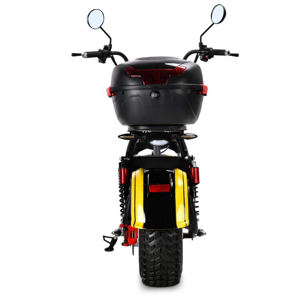 Мощность мотора 2000 Вт (номинал) обеспечивает разгон до 45 км/ч и подъемов до 20–25° даже при полной нагрузке 260 кг, но на неровностях или в дождь скорость падает. Аккумулятор Li-ion 60V дает заявленный пробег 60 км в идеале (Eco-режим, ровный асфальт), балансируют скорость/запас хода, снижая потребление на 20–30% в Eco. Тормоза — гидравлические дисковые (диаметр 120–140 мм), эффективны на мокром асфальте; энергоэффективность высока благодаря рекуперации (5–10% возврата энергии); зарядка (7 часов) стандартна для Li-ion без потери срока службы.