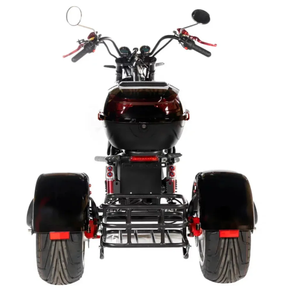 Электроскутер CityCoCo Trike Chopper Premium – это современное транспортное средство, которое сочетает в себе мощь, стиль и передовые технологии для комфортного передвижения в городе и за его пределами. Он создан для требовательных пользователей, ценящих безопасность, динамику и удобство эксплуатации.Модель оснащена двумя мощными двигателями по 3000W, суммарная мощность которых обеспечивает стремительный разгон и стабильную работу даже в сложных дорожных условиях. Максимальная скорость достигает 70 км/ч, что позволяет быстро и уверенно перемещаться в городском потоке. При этом заявленный пробег до 70 км на одном заряде делает этот скутер отличным выбором для длительных поездок – конечно, реальные значения зависят от веса райдера, рельефа местности и погодных условий.Надежность и безопасность обеспечиваются дисковой гидравлической тормозной системой, гарантирующей мгновенное и точное торможение в критических ситуациях. Прочная конструкция и цельная рама рассчитаны на максимальную нагрузку до 250 кг, что позволяет без опасений перевозить как пассажиров, так и дополнительный багаж. 18-дюймовые колеса в сочетании с пружинно-масляной подвеской дарят комфортную и плавную езду, эффективно гасив неровности дороги.Эффективный Li-ion аккумулятор емкостью 40 Ah полностью заряжается за около 6 часов, обеспечивая быстрый возврат в эксплуатацию и длительное время работы без подзарядки. При массе в 100 кг этот электроскутер удачно сочетает в себе мобильность и устойчивость, оставаясь удобным в управлении даже при интенсивном использовании.CityCoCo Trike Chopper Premium – это идеальное решение для тех, кто ищет высокопроизводительный и стильный электроскутер с отличными техническими характеристиками, способный обеспечить уверенное передвижение в любых условиях.