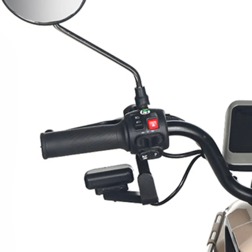Электротрицикл Rutrike Gelbert Atlas 48V/60V 600Вт – это современное транспортное средство, созданное для комфортного передвижения в условиях города и за его пределами. Модель выделяется элегантным бежевым оттенком, придающим ей утончённый и стильный вид, а также продуманной компоновкой, которая обеспечивает отличную устойчивость и удобство управления.Благодаря двигателю мощностью 600 W, работающему на диапазоне напряжения 48/60 V, Atlas уверенно стартует и поддерживает стабильную динамику, достигая максимальной скорости до 25 км/ч – оптимального показателя для спокойного городского движения. Компактные 8‐дюймовые колеса способствуют надежному сцеплению с дорогой, что особенно важно при маневрировании в условиях ограниченного пространства.С весом 95 кг и способностью выдерживать нагрузку до 190 кг, этот электрический трицикл демонстрирует баланс между легкостью и прочностью конструкции. Его габаритные размеры (148×81×65 см) позволяют устройству занимать минимальное пространство при хранении и транспортировке, оставаясь при этом функциональным и устойчивым на дороге.Электротрицикл Atlas от Gelbert спроектирован с учетом современных требований безопасности и удобства эксплуатации – надежная система торможения в сочетании с продуманной эргономикой делает каждую поездку не только комфортной, но и безопасной. Эта модель станет отличным выбором для тех, кто ищет практичное и стильное решение для повседневного передвижения, совмещающее высокую технологичность с оригинальным дизайном.