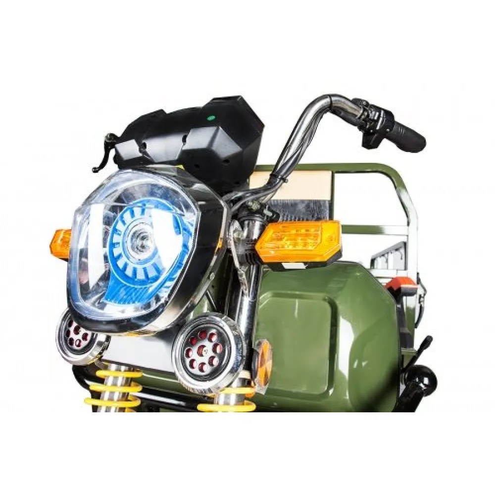 Грузовой электротрицикл Rutrike Гибрид 1500 60V1000W32Ah зеленый – модная и практичная техника по цене производителя ожидает своего покупателя. Особенности и наличие грузового отделения делает технику практичной для транспортировки груза и других изделий. Купить электротрицикл сейчас можно связавшись с менеджером магазина по телефону или в чате.