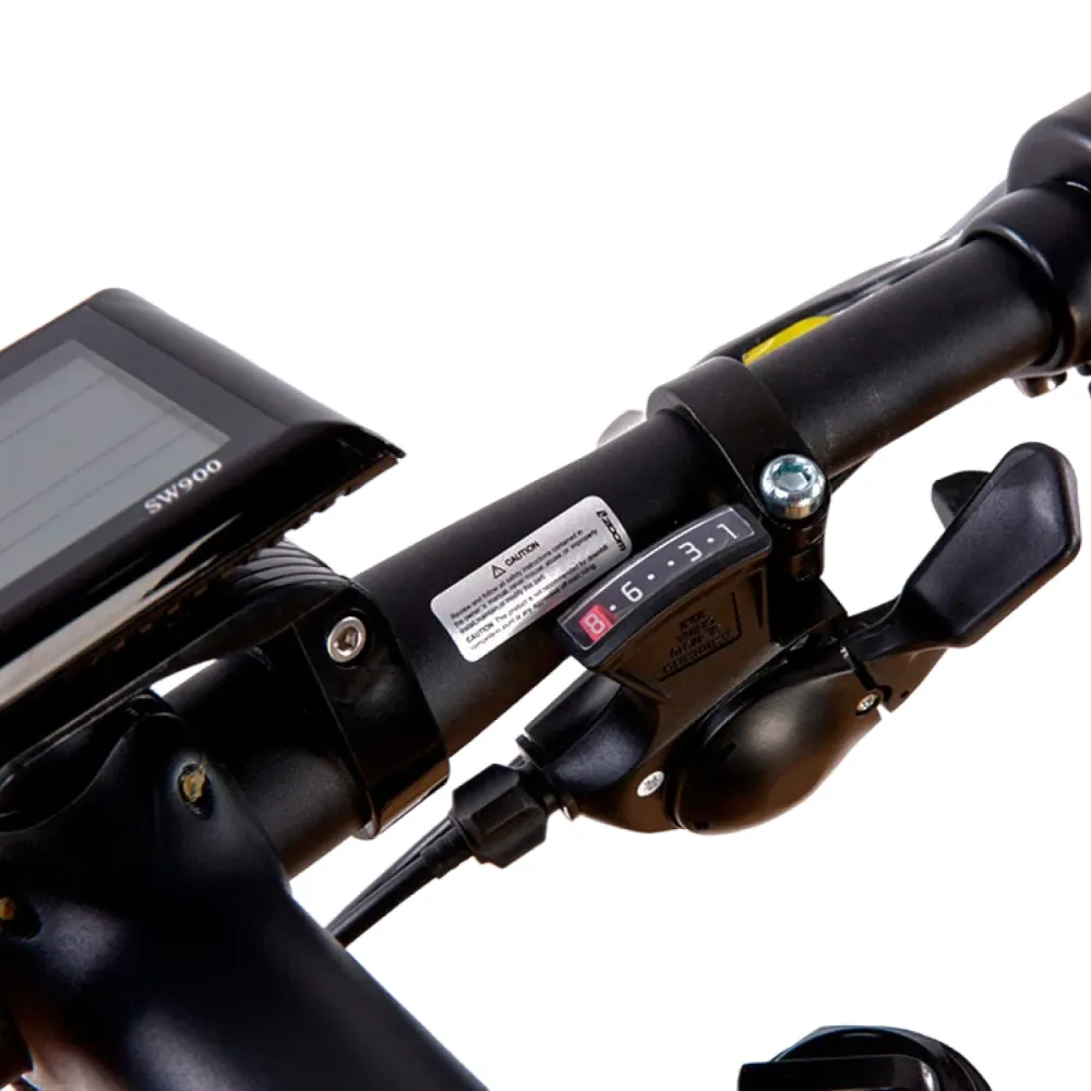 При мощности двигателя 1500 Вт электровелосипед без труда развивает скорость до 52 км/час, и на одной подзарядке преодолевает до 100 км пути. Половинчатая ручка управления скоростью предназначена для удобного переключения 1 из 8 скоростных режимов.