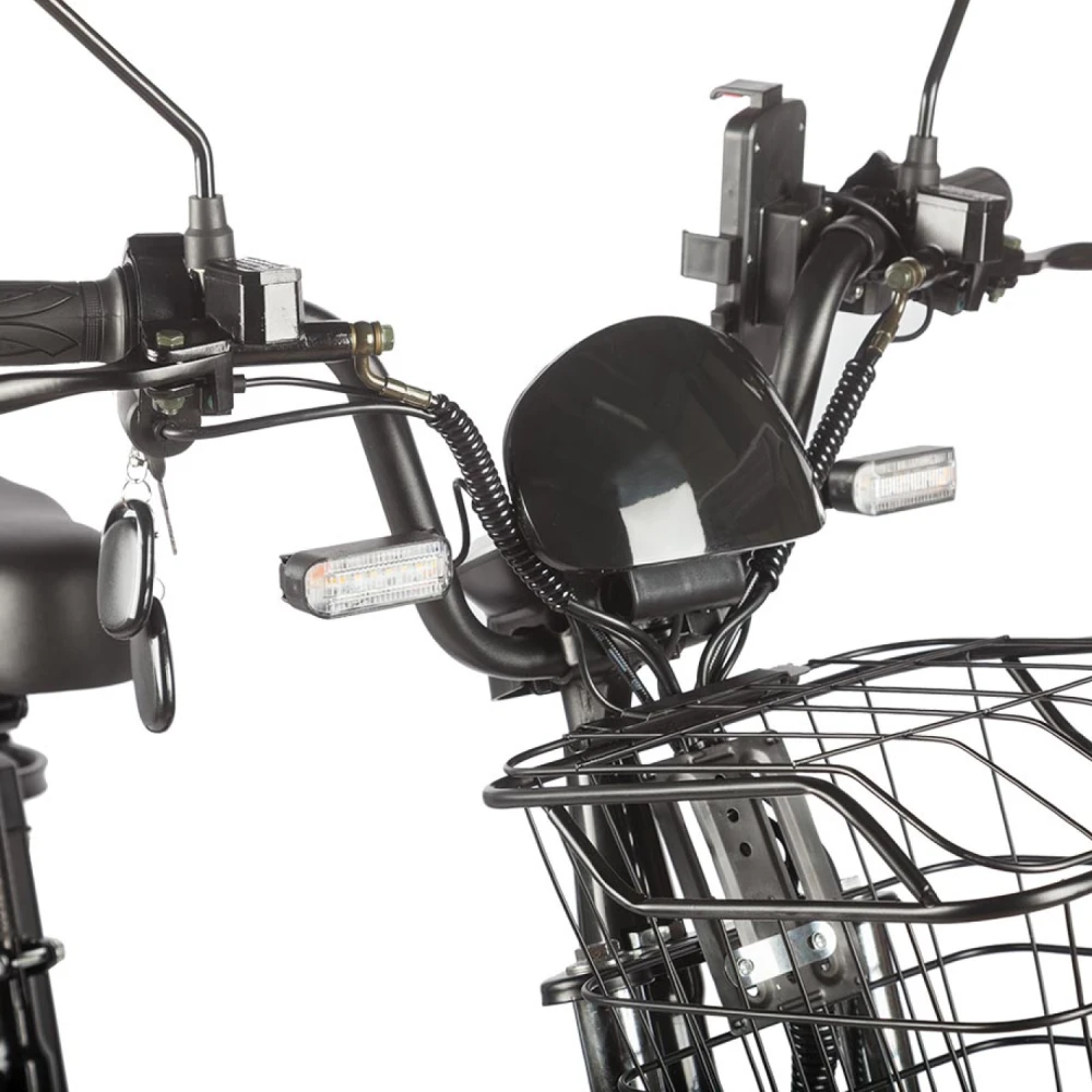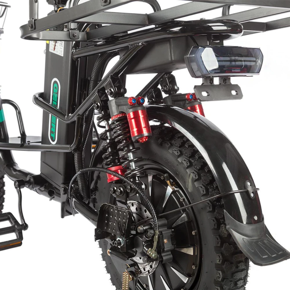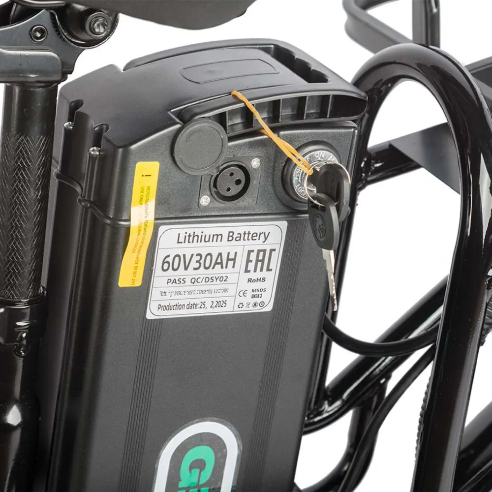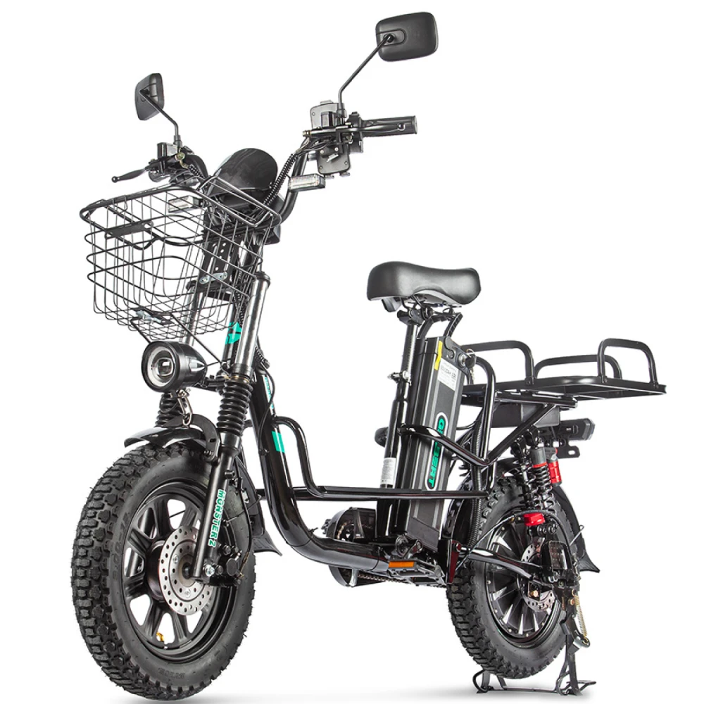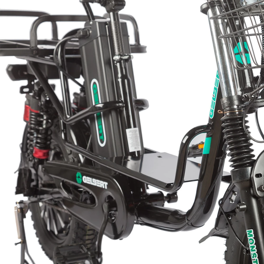 Электровелосипед Eltreco Gelbert Khan Monster 2 – это современное средство передвижения, сочетающее в себе продуманную конструкцию, передовые технологии и стильный дизайн для уверенных городских и пригородных поездок.Модель оснащена передним и задним амортизаторами, которые эффективно смягчают неровности дороги, обеспечивая плавность хода и комфорт даже на пересеченной местности. При заявленном максимальном пробеге до 100 км на одном заряде этот велосипед подходит для длительных поездок – конечно, реальные показатели зависят от веса райдера, рельефа местности, погодных условий и температуры окружающей среды.Безопасность обеспечивается за счет дисковых гидравлических тормозов, которые гарантируют надежное и своевременное торможение в любых ситуациях. Легкий вес в 57 кг позволяет легко маневрировать, а максимальная нагрузка до 150 кг делает модель универсальной для разных категорий пользователей.Двигатель мощностью 240 W, размещенный в задней части, обеспечивает эффективное ускорение и оптимальное распределение энергии, что способствует стабильной работе в условиях городской среды. Электровелосипед оборудован аккумулятором с емкостью 30 Ah и рабочим напряжением 60 V, что гарантирует долгий срок службы батареи и надежную работу даже на длинных маршрутах.Габариты в собранном состоянии – 1700×1150×800 мм – обеспечивают удобное расположение для водителя, а использование качественной стали в конструкции гарантирует долговечность и надежность всей системы. Дополнительное оснащение включает зеркала заднего вида, которые повышают безопасность, а встроенные передние и задние габаритные фары обеспечивают отличную видимость в условиях недостаточной освещенности.Стоит отметить, что данная модель не является складной, что подчеркивает ее прочную и стабильную конструкцию, рассчитанную на долгосрочную эксплуатацию. Электровелосипед Eltreco Gelbert Khan Monster 2 – это оптимальное решение для тех, кто ищет сочетание высоких технологий, надежности и комфорта в одном устройстве.