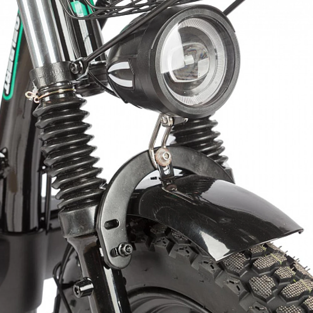 Электровелосипед Eltreco Gelbert Condor 2 – это современное решение для тех, кто ищет сочетание надежности, экономичности и передовых технологий в одном устройстве. Сконструированный на основе прочной стальной рамы, он гарантирует долговечность и устойчивость даже при максимальной нагрузке до 140 кг.Устройство оснащено двухподвесной системой, которая эффективно поглощает дорожные неровности, обеспечивая комфортное перемещение по разнообразным маршрутам. Диаметр 16-дюймовых колес и передовые дисковые гидравлические тормоза способствуют надежному сцеплению с дорогой и безопасному торможению в любых условиях.Сердцем велосипеда является задний двигатель мощностью 240 W, который, несмотря на компактные размеры, позволяет развивать скорость до  км/ч, делая поездки динамичными и эффективными. При этом заявленный пробег до 100 км на одном заряде позволяет использовать электровелосипед для длительных поездок без частой подзарядки.Эффективная система питания реализована с помощью аккумулятора типа Li-ion, работающего по параметрам 60V и 30Ah, что обеспечивает стабильное энергоснабжение и время полной зарядки всего за 5–7 часов. Дополнительное оснащение включает переднюю фару и задние стоп-огни для улучшения видимости в условиях плохой освещенности, а также систему старт-стоп, способствующую экономии заряда аккумулятора.Gelbert Condor 2 представляет собой гармоничное сочетание стиля, производительности и практичности – идеальный выбор для тех, кто ценит комфорт, надежность и современные технологии в повседневном передвижении.