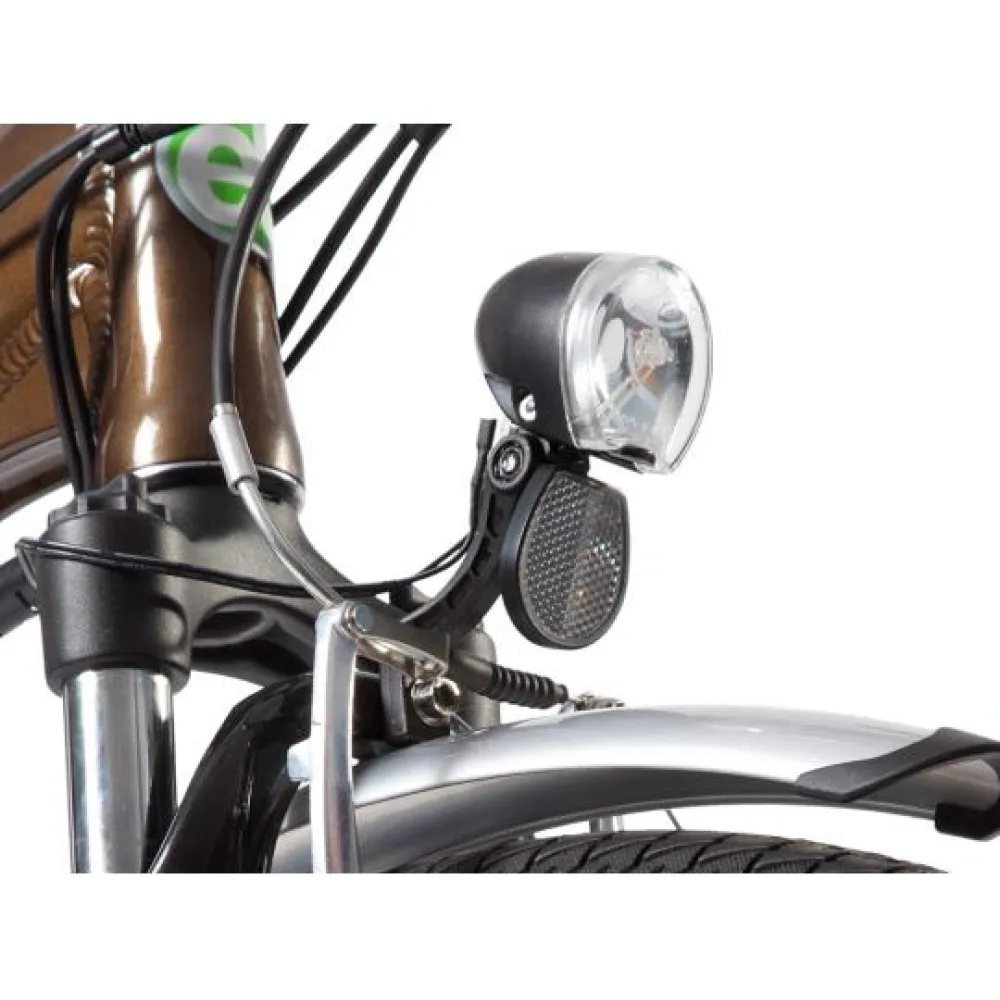 Электровелосипед Eltreco Grand 700 C оснащен литий-ионным аккумулятором, емкостью 10 А*ч, он легко снимается, пополнить заряд батареи можно за 6 часов, подключив ее к сети через зарядное устройство. Полного заряда батареи хватает на 70 км пути. Агрегат оборудован мотор-колесом мощностью 250 Вт, редукторный двигатель придает ровное ускорение и имеет экономное энергопотребление. Максимальная скорость, развиваемая транспортным средством, составляет 30 км/ч.