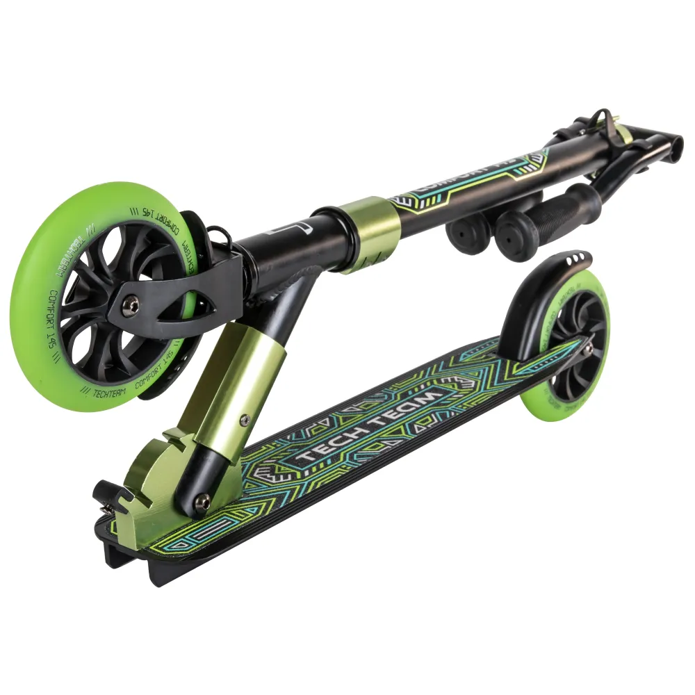 Самокат Tech Team COMFORT 145R 2022 черно-зеленый понравится необычным дизайном и заметностью. Техника рассчитана для езды по городской местности и парковой зоне. Брендовые логотипы и особое отношение к оформлению по достоинству были оценены пользователями. Приобрести модель выгодно, получить бесплатную консультацию предлагает наш интернет-магазин.