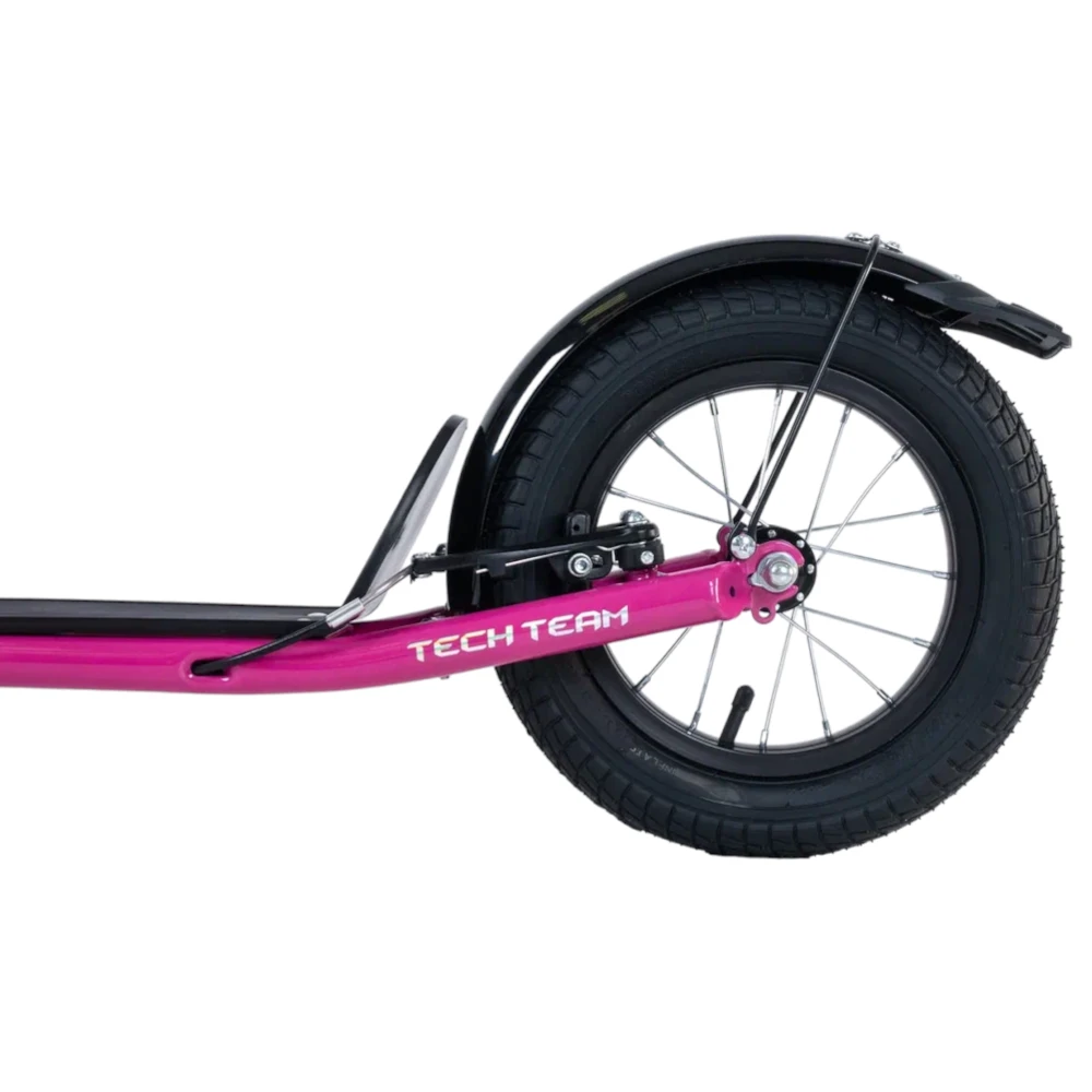 Tech Team Super Jet 700 2024 года в ярком розовом цвете - это городской самокат с уникальным дизайном, напоминающим велосипед. Большое переднее колесо диаметром 406 мм и заднее колесо диаметром 305 мм обеспечивают отличную устойчивость и комфорт при езде. Ободные тормоза и велосипедный руль с двумя ручками тормоза обеспечивают надежное торможение и удобное управление. Максимальная нагрузка до 100 кг позволяет использовать самокат людям разного веса. Рама из алюминия делает самокат легким и прочным, его вес составляет всего 8,1 кг. Этот самокат идеально подходит для активных городских поездок.