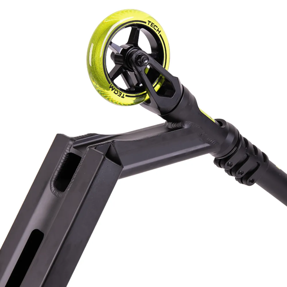 На этапе изготовления компания tech учла ошибки предыдущей линейки. Самокаты tech для начинающих райдеров изготовлены из высокопрочного надежного материала. Парковый самокат имеет алюминиевую деку габаритами 49х12 см с футспейсом 34 см. Оснащенность team scout конкейвом позволяет осваивать трюковые элементы, контролировать действия ездока. Трюковый самокат tech team имеет Т-образную форму руля. Ширина руля составляет 54см. Высоты руля от зажима (61,5 см) достаточно для ездоков начального уровня. Базовая модель techteam scout оснащена накатистыми полиуретановыми колесами с металлическим сердечником, промышленными подшипниками Abec 9. Каждый из трюковых элементов гарантирует максимальный разгон, важный для каждого трюкача.