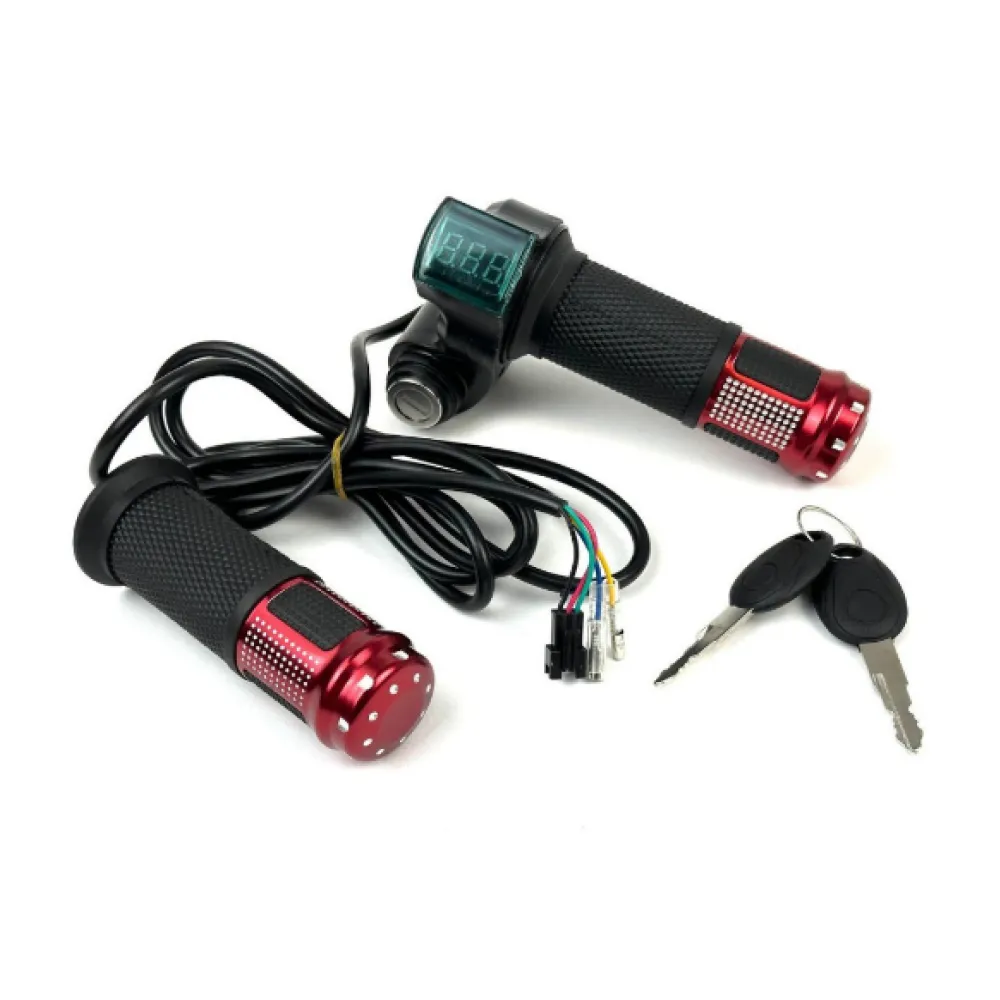 Ручка газа с вольтметром и замком зажигания (кабель 2 метра) - это инновационное устройство, которое обеспечивает удобство и безопасность при управлении вашим электротранспортом, таким как электросамокаты или электровелосипеды. С помощью вольтметра вы сможете контролировать напряжение в системе и состояние батареи, что позволит вам планировать свои поездки и избегать ситуаций, когда заряд батареи иссякнет внезапно. Замок зажигания обеспечит безопасность вашего электротранспорта, защищая его от кражи или несанкционированного использования. Кабель длиной 2 метра обеспечивает удобство при установке этой ручки газа на ваш электротранспорт. Перейдите на новый уровень управления и безопасности с ручкой газа с вольтметром и замком зажигания для электротранспорта!
